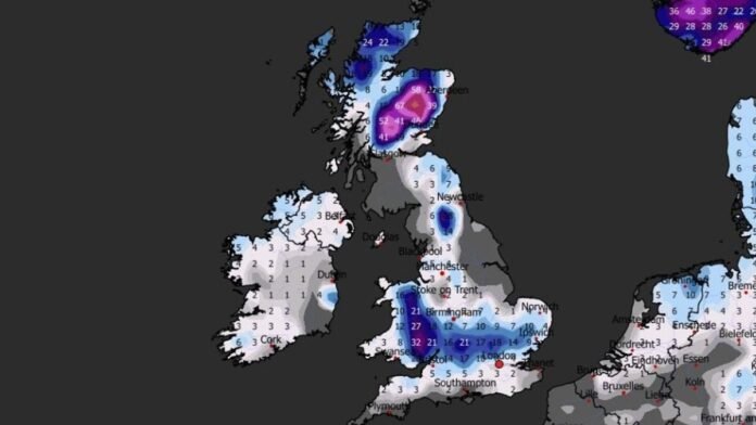 Weather experts are predicting an extended blizzard lasting six days that could blanket the entire UK with snow, reaching up to 100cm (40 inches) in some areas.